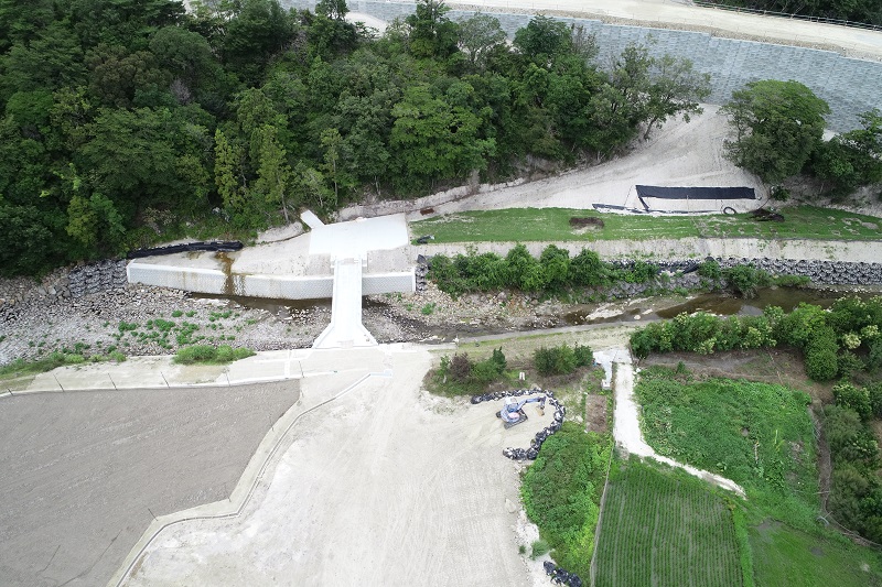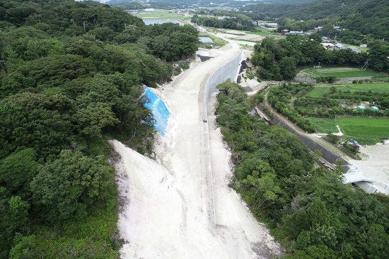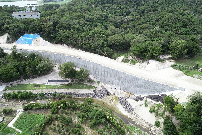 | 工事内容 | 谷部を補強土壁材を使って盛土を行う工事でした。盛土をスムーズに行うために仮設道路の計画が重要となりました。盛土材の搬入経路や掘削土の搬出経路を十分に計画し掘削土と盛土材のバランスがより良く取れるように工程管理を行いました。また河川内の施工もあり非出水期中に施工を終えなければならない等の様々な条件の中での工事となりました。周辺では複数の工事が行われていたため、お互いの工事車両の搬入や搬出の情報交換を密に行い協力し合い工事を進めることができました。 |