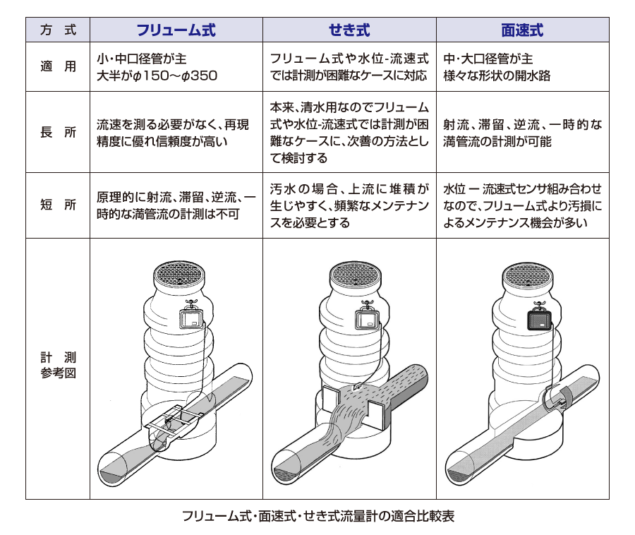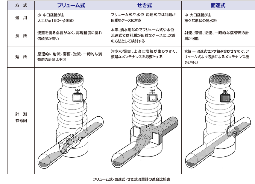 ●開水路流量計の精度は、現場の水理条件に左右されやすいので、現場条件に適合した方式を選択することが、精度管理上重要です