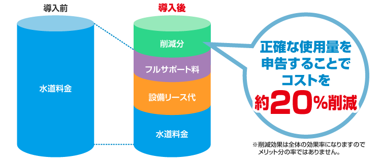 正確な使用量を申告することでコストを約20%削減 ※削減効果は全体の効果率になりますのでメリット分の率ではありません。